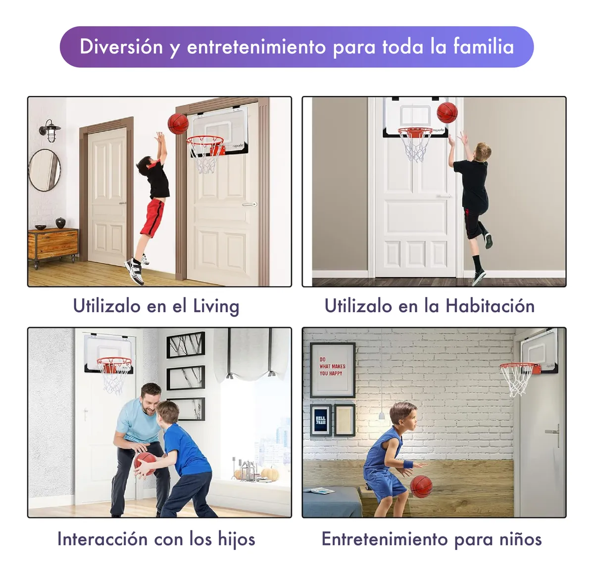 Se arma en 3 minutos, y se coloca en cualquier puerta, listo para jugar y divertirse en casa.